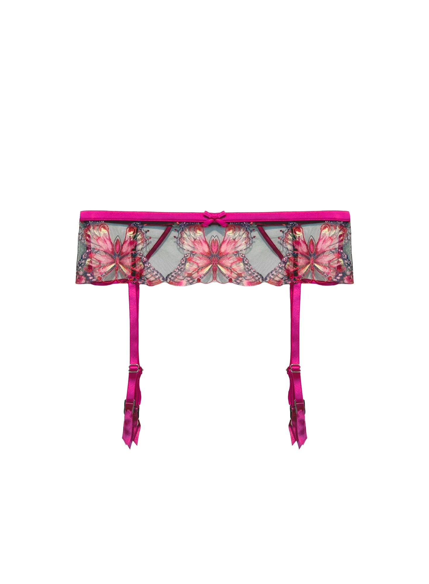 Our Butterfly Embroidery Garter Belt is the perfect addition to amp up your lingerie set. Features custom butterfly embroidery with luxe silk trim. Adjustable straps with center back closure. Complete this stunning set with the matching Butterfly Embroidery Balconette Bra and Cheeky.
