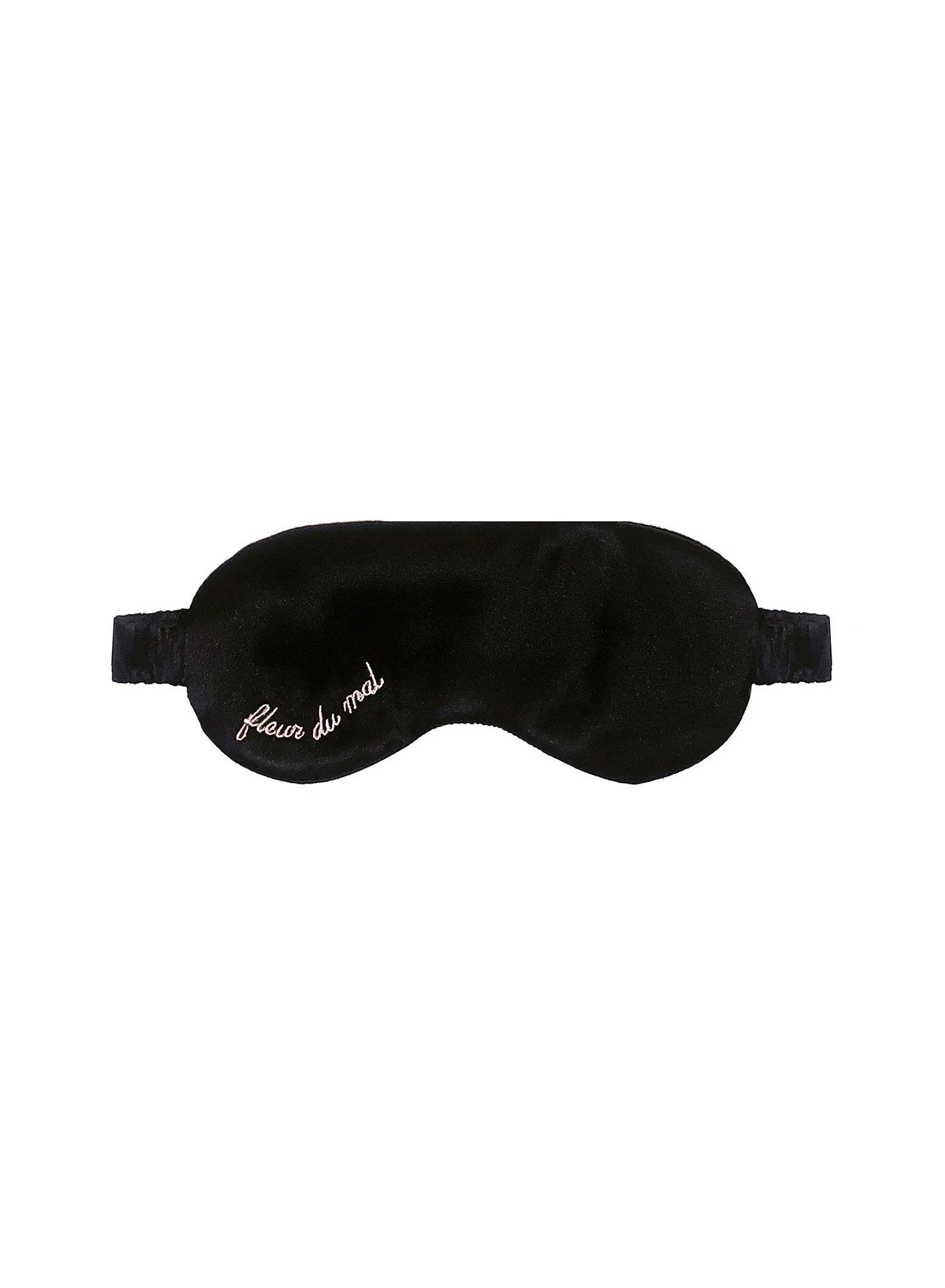 Do not disturb. Our Logo Silk Eye Mask in luxe black silk, featuring light pink logo embroidery. Light padding with silk covered elastic band for extra comfort. Pair with the Fleur PJ Top and Bedroom to Boardroom Pant for an ultra chic bedtime set.