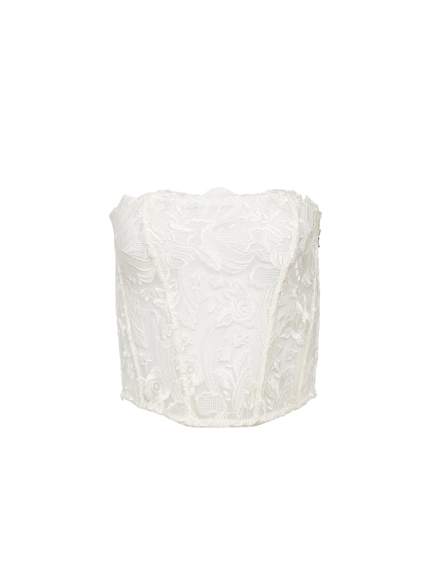 Our stunning Lola Bow Embroidery Corset Top, featuring custom Swiss embroidery with organza on sheer tulle ground. Ultra flattering soft boning with power mesh back and exposed side zipper. Take it out with the Relaxed Houndstooth Pant.