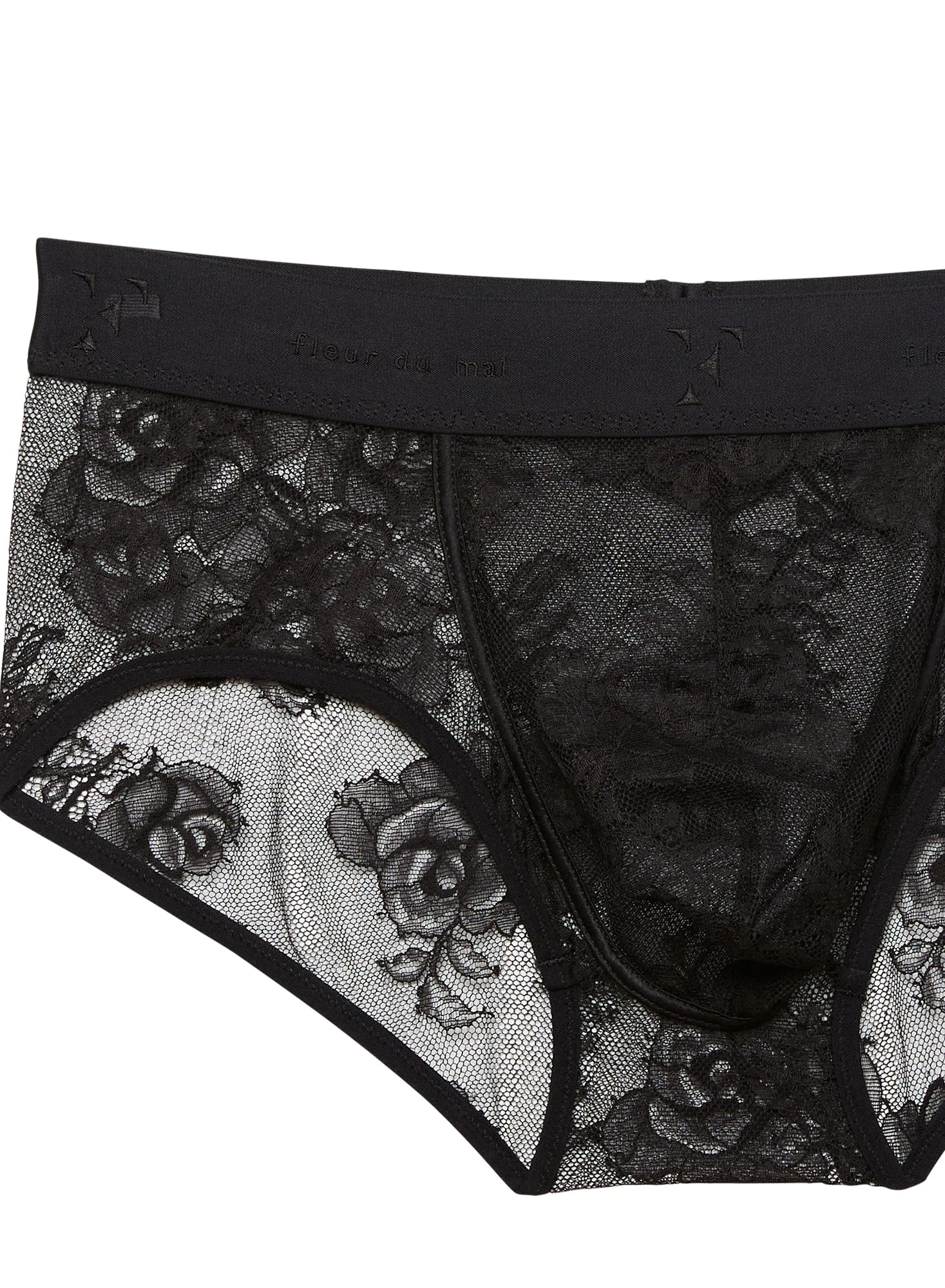Gentlemen prefer Fleur. Our new Men’s Bouquet Lace Brief, cut from soft, stretch leavers lace with seams designed for light lift and contour. Embroidered logo elastic waistband for soft comfort. Pair it back to the Men’s Silk Jacquard PJ Pant.