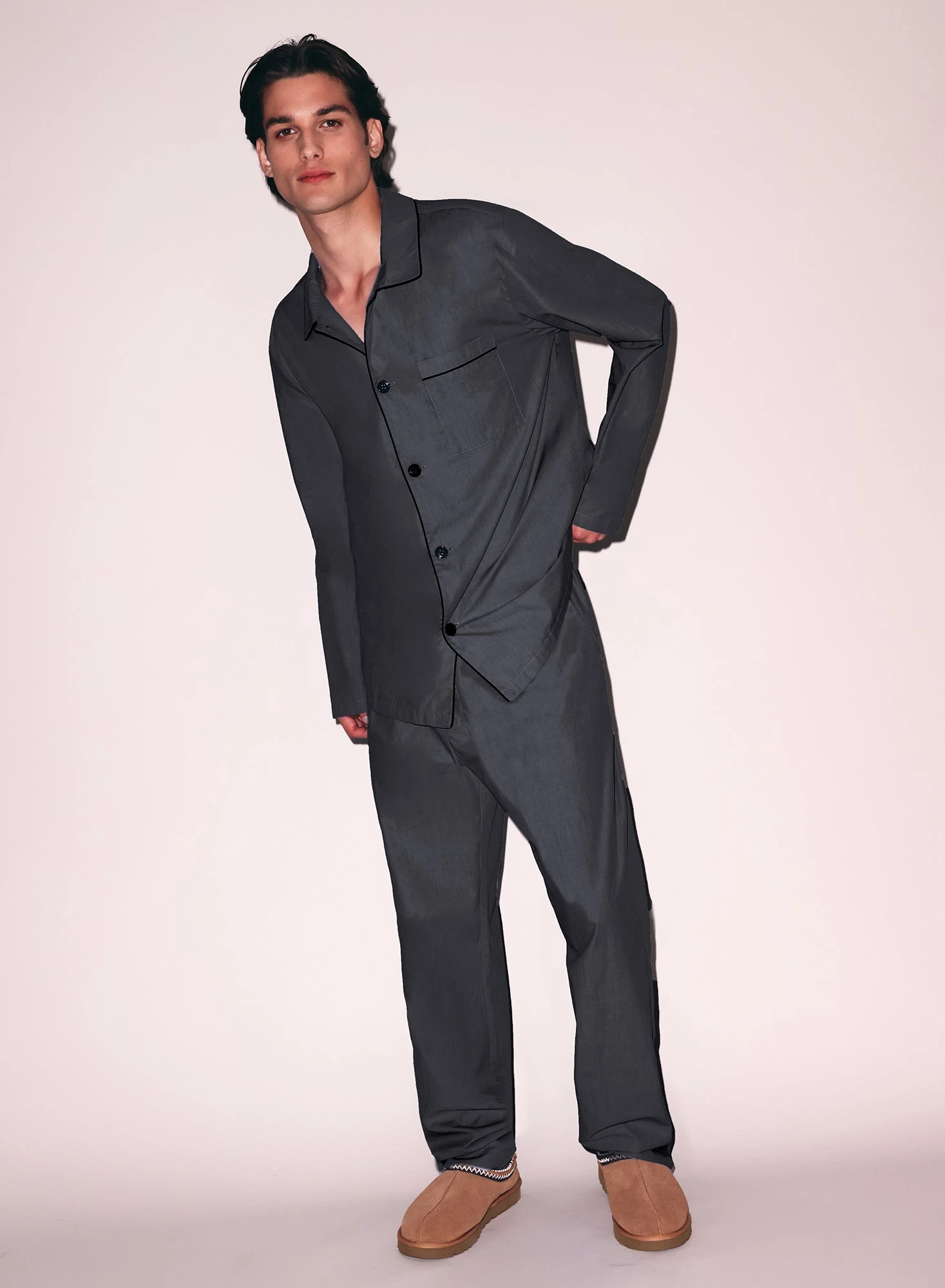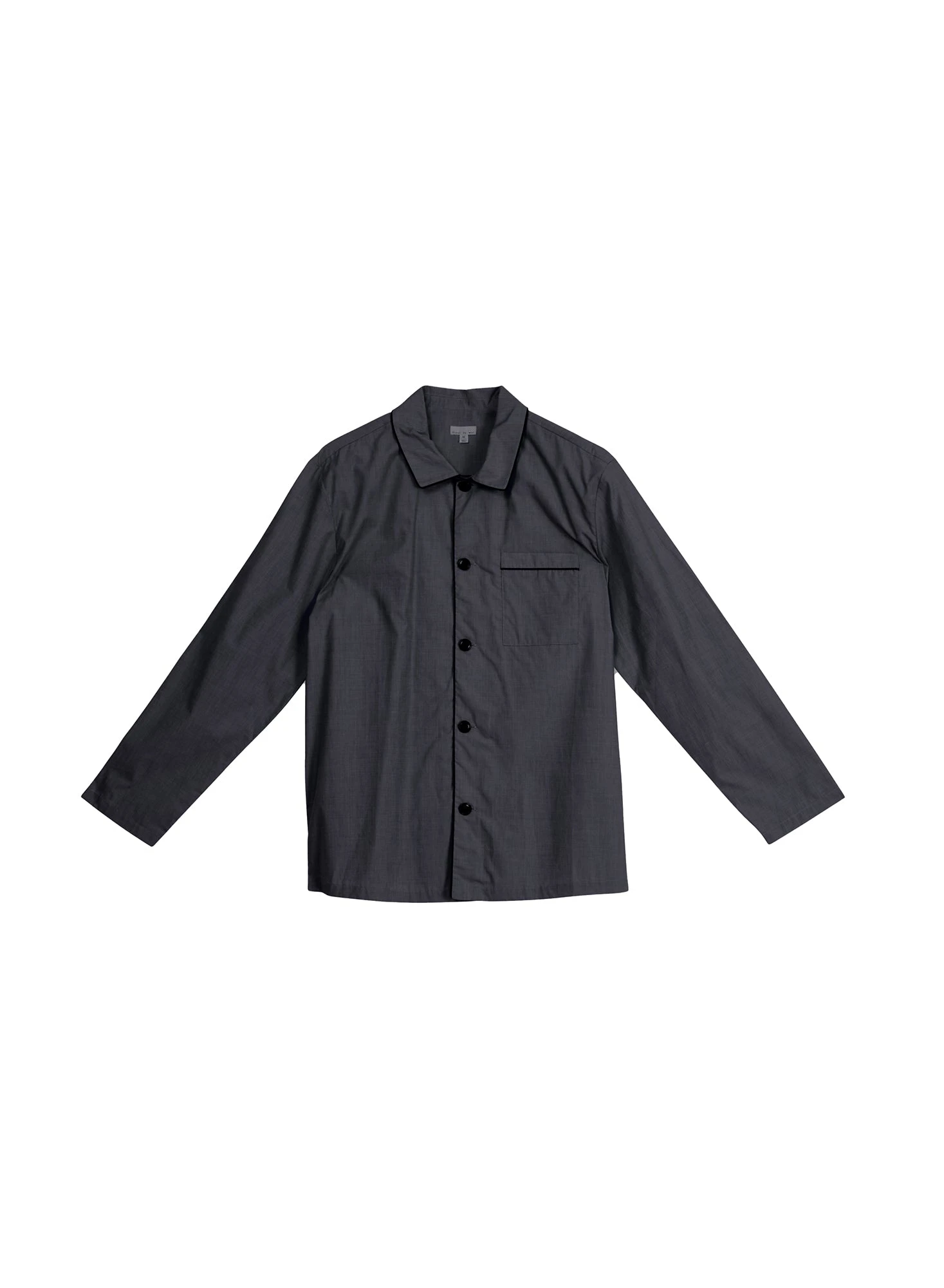 Our Poplin PJ Top made from lightweight European cotton with silk contrast piping, front button closure, and pocket detail. A relaxed fit. Complete the set with the matching Poplin PJ Pants and Poplin Robe.