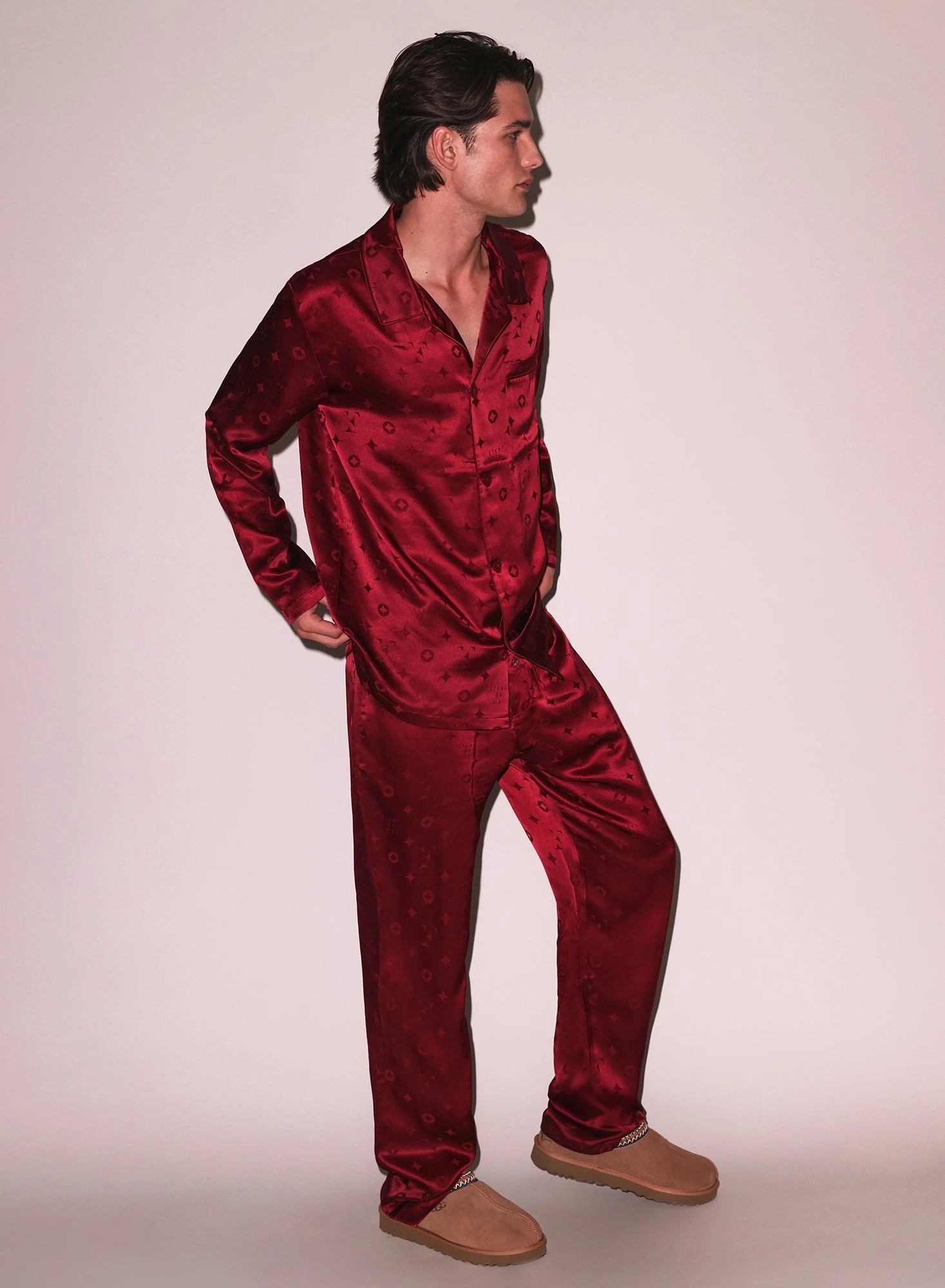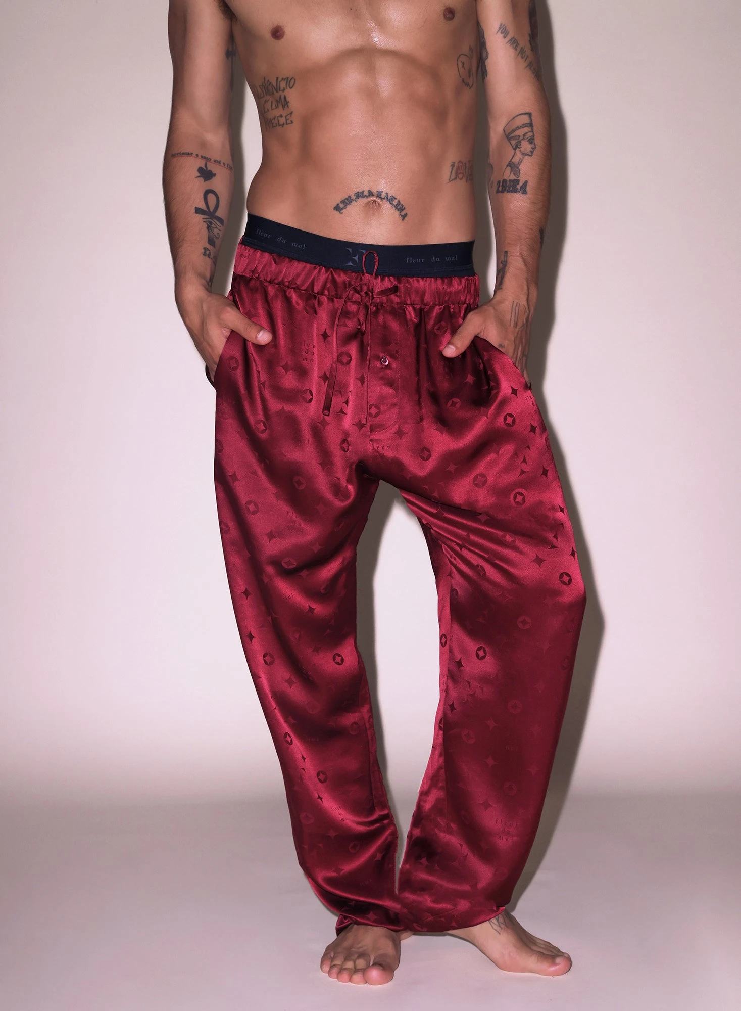 Ultra luxe. Fleur monogram printed silk pajama pant with drawstring waist and pocket detail. Complete the set with the matching Silk Jacquard PJ Top.