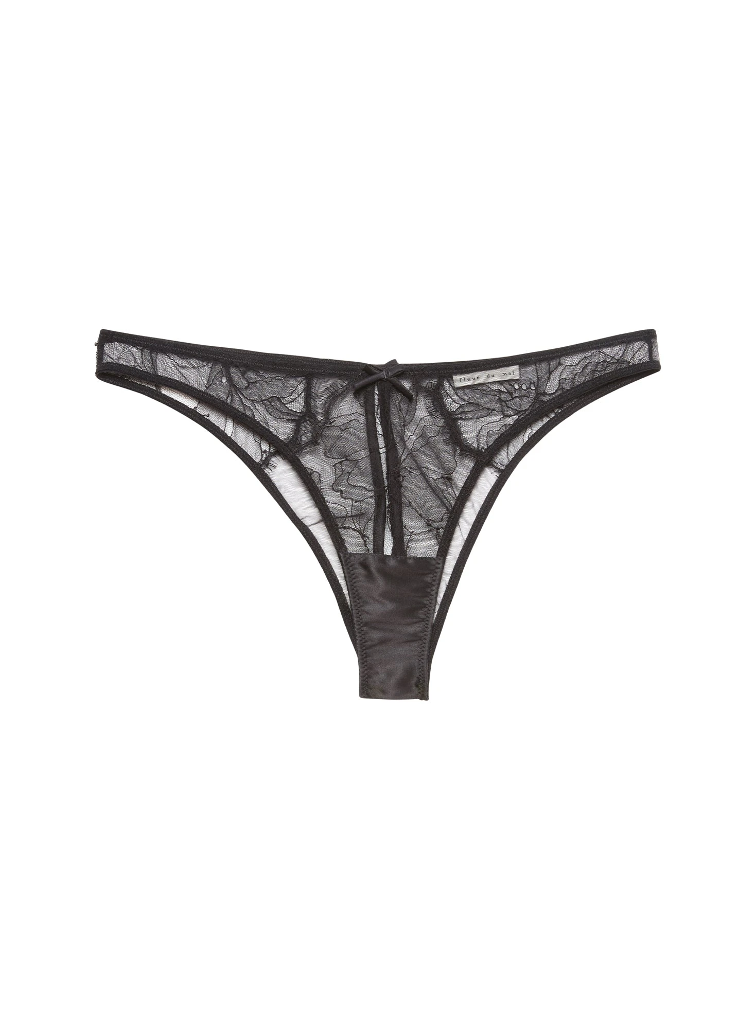 Our Sophia Lace Ouvert Cheeky, cut from made from French lace with mesh paneling. Flattering cheeky cut with ouvert peekaboo slit at back.Complete this seriously sexy set with the matching Sophia Lace Balconette Bra and Garter Belt.